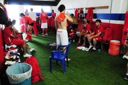 Por volta das 15h45min, a delegação colorada chegou a Canoas. Uma das preocupações do grupo é o forte calor, que também afastou os torcedores do Complexo da Ulbra. O clima entre os jovens jogadores é de concentração total.